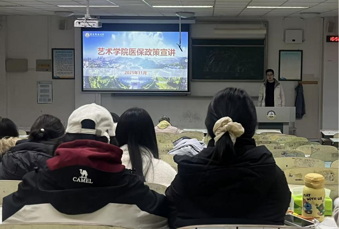 为切实保障学生的医疗权益,提升学生对医保政策的认知度和参保积极性,近日,艺术学院在弘毅楼B201教室成功举办了2026年度医保政策专项宣讲会。宣讲会由辅导员盛士峰主持,各年级学生代表参会。